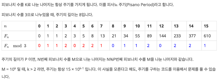 이 문제에는 피사노 주기(Pisano Period)가 사용된다.